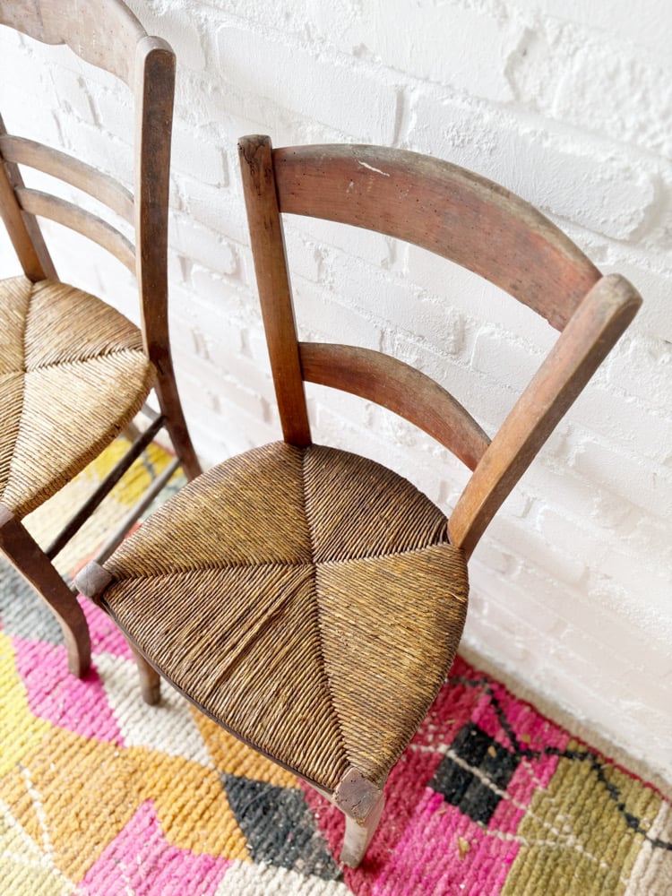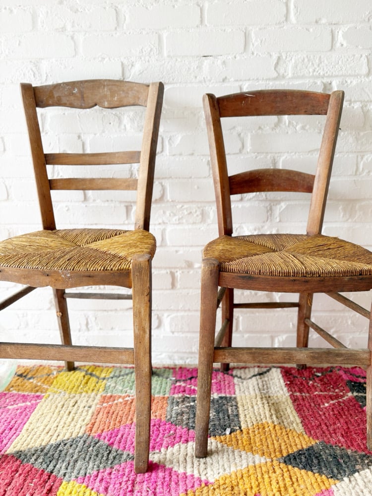 Lot de 2 chaises anciennes dépareillées style campagne