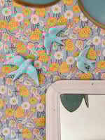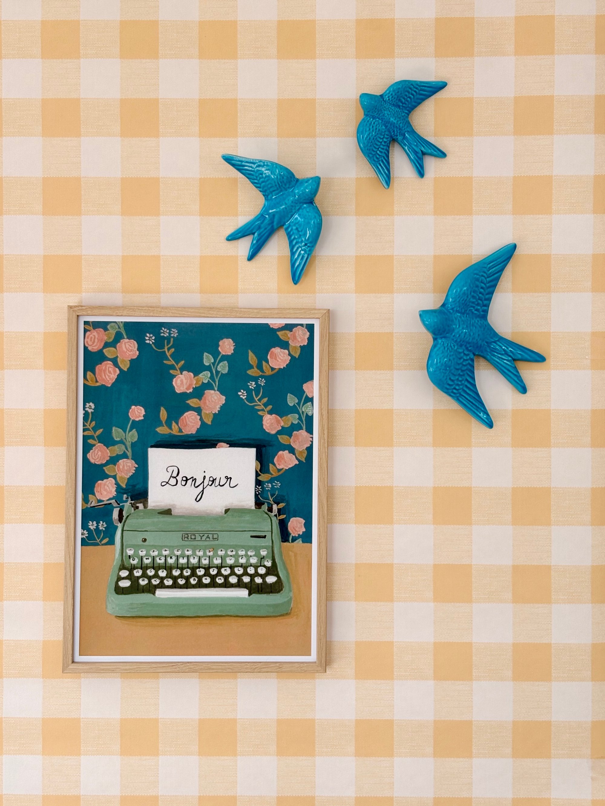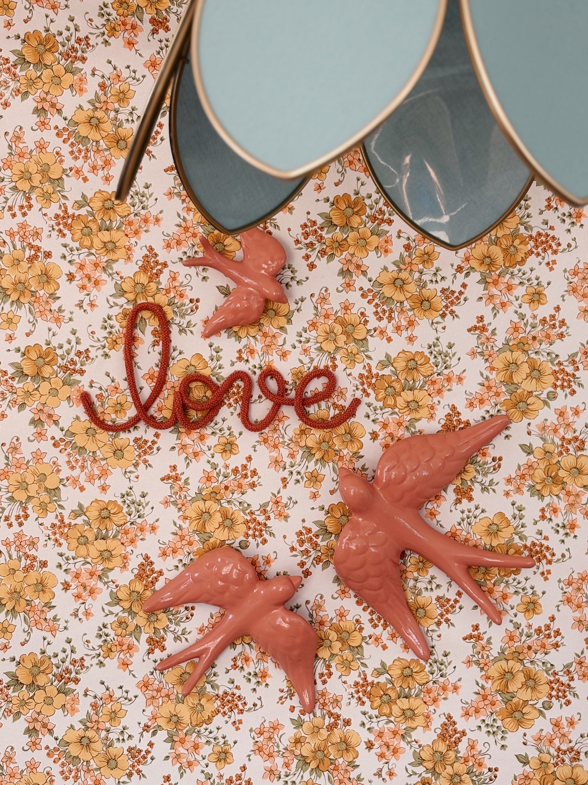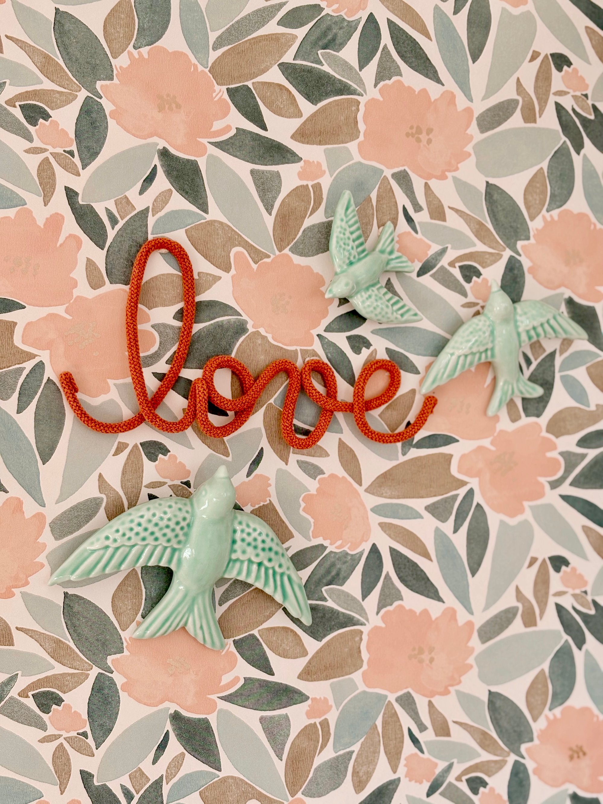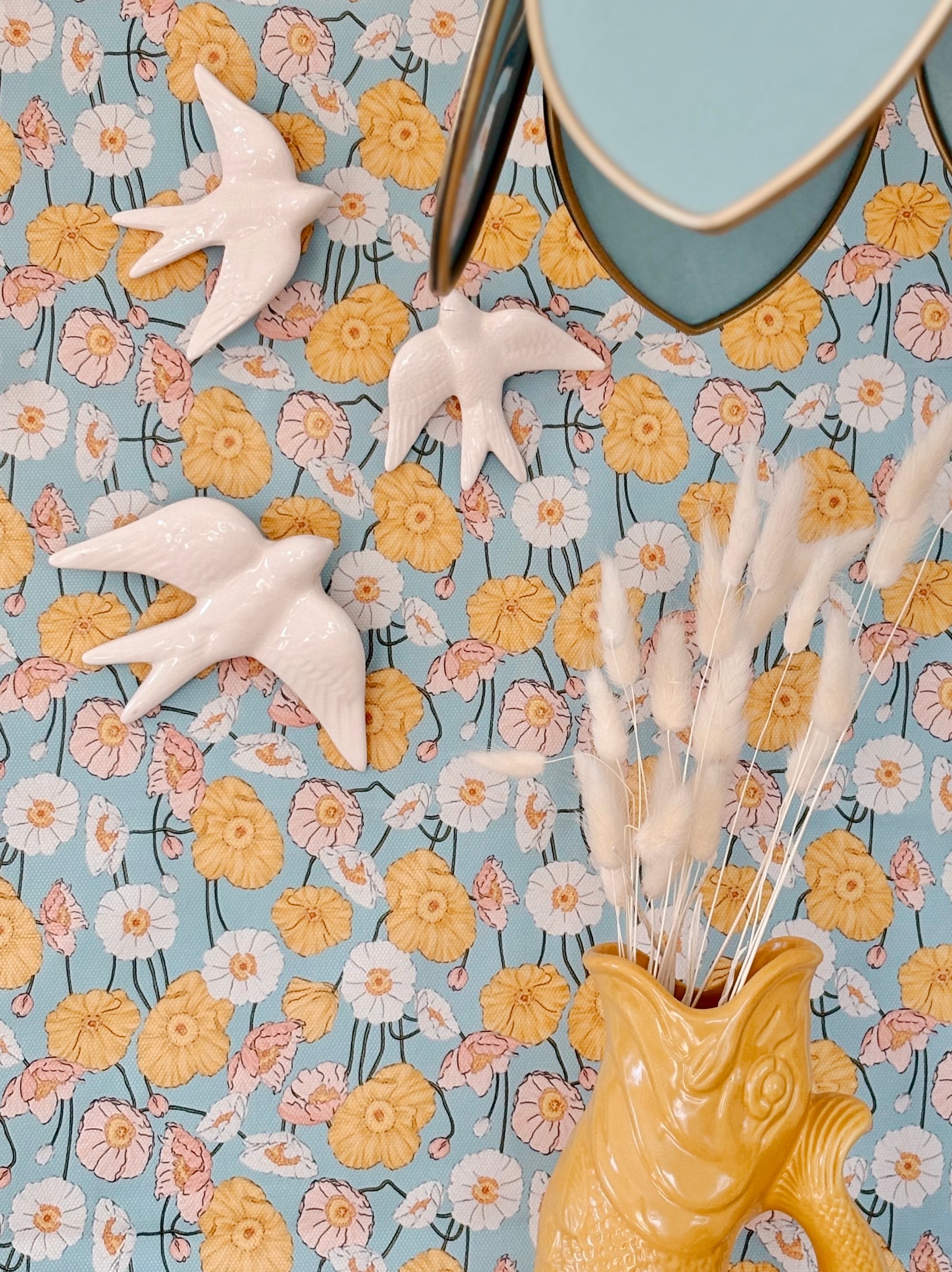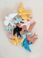 Charmantes hirondelles colorées en céramique, fabriquées artisanalement, au Portugal.