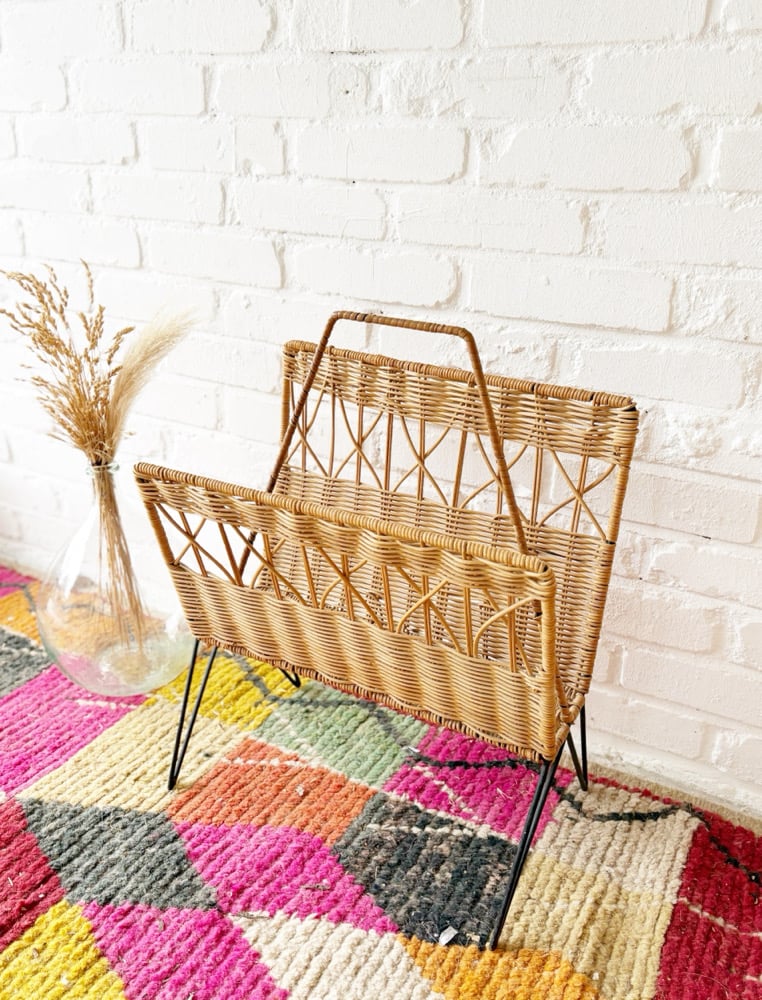 Très chic et design porte revues vintage en osier et métal