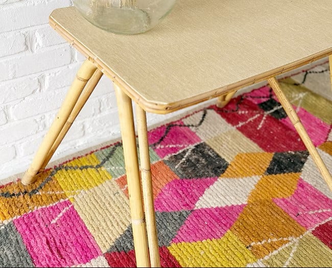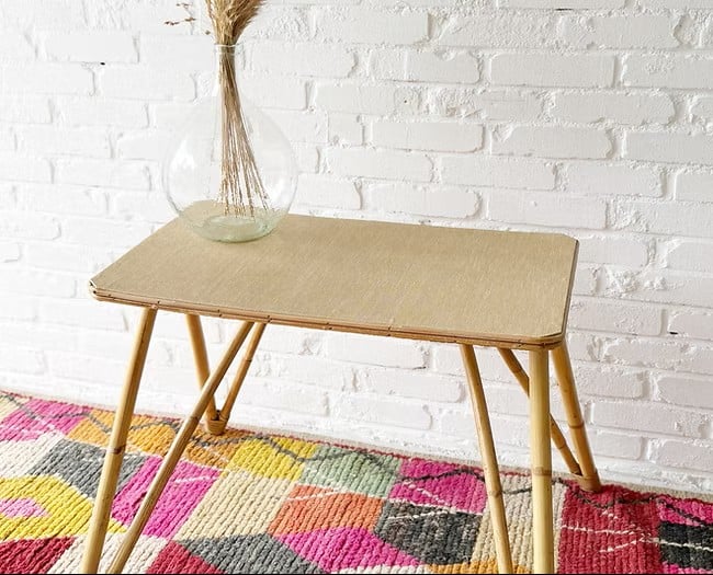 Originale petite table d’appoint ou bureau pour enfant, vintage, en rotin des années 60